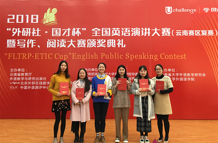 11月2日,2018“外研社杯”全国英语演讲大赛云南赛区复赛暨2018“外研社杯”全国英语写作、阅读大赛颁奖典礼在云南大学呈贡校区外国语学院一楼报告厅举行。永利官网外国语学院2016级英语专业学生洪若琳、生科系2018级生物技术专业学生邹宇婷和学特学院2016级学前教育专业学生杨艺琛分别荣获了本次阅读大赛省级二等奖、写作大赛省级二等奖和演讲大赛省级三等奖。