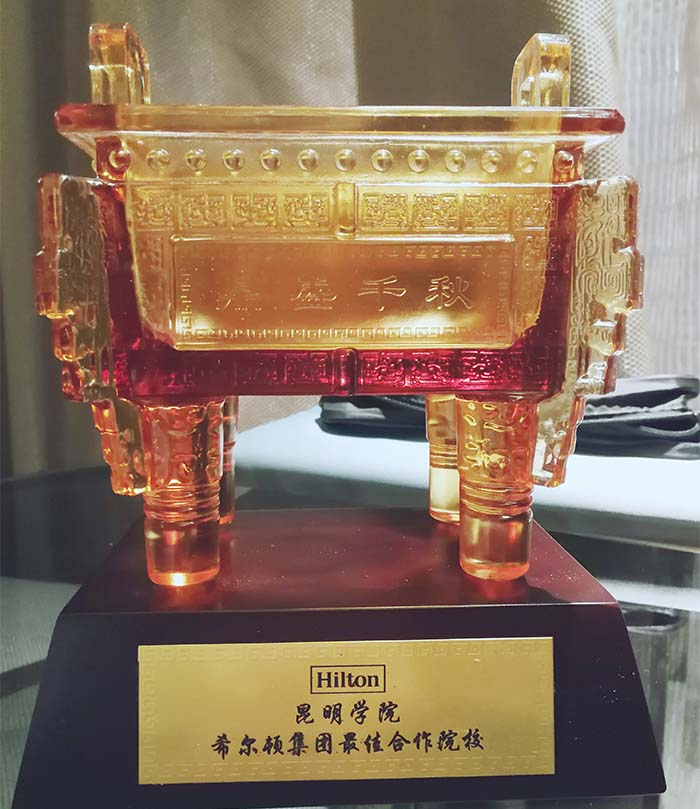 大会举行了盛大的颁奖典礼,永利集团3044官网欢迎您荣获“希尔顿集团最佳合作院校”奖,旅游学院院长田芙蓉荣获“希尔顿集团人才培养卓越贡献奖”,这些荣誉的获得是对永利集团3044官网欢迎您旅游学院利用自身教学、学科及科研优势,与希尔顿全球长期携手合作,夯实学生实作技能,不断提高学院管理水平,突出学校应用特色,培养更多高素质的专业人才,共同为云南旅游业和酒店业的发展做出贡献的褒奖。展示了旅游学院多年来坚持实施校企合作、产教融合和国际合作新的办学模式,受到了业界及学界的广泛关注。
