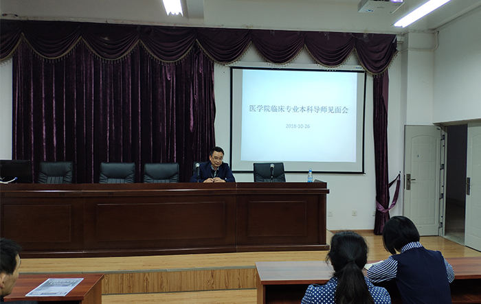 10月26日,医学院召开2018级临床医学专业导师工作会议和导师与学生见面会,安排部署和开展导师工作。14名导师和2018级临床医学专业44名同学参加会议。会议由医学院党总支书记王建华同志主持。