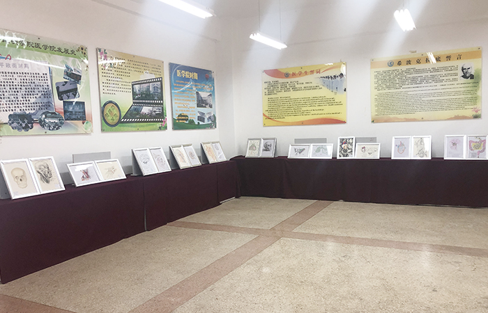 为迎接本科教学审核评估工作,对解剖绘图大赛初赛遴选出的50余幅作品公开进行展览,展览的地点分别在:医学院一楼大厅、医学院负一楼解剖实验室走廊及医学院负一楼北侧楼梯间。本次教育部审核评估专家浙江中医药大学副校长李俊伟教授对我院学生的作品给予了高度肯定,并鼓励我院师生继续发扬“刻苦学习与坚持创新的精神”。近日,广大师生陆陆续续参观了本次展览,为广大师生展示了医学解剖绘图艺术的魅力。