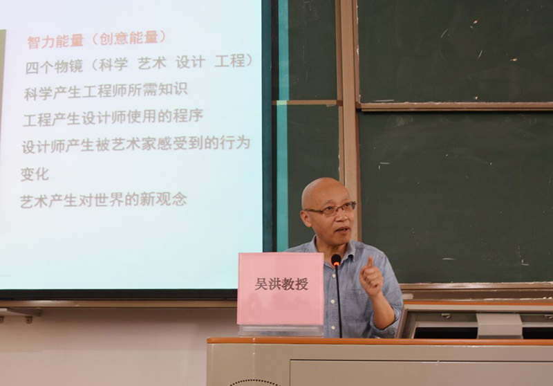 演讲的最后,吴洪教授留出时间和同学们进行交流,吴洪教授为在解答大学生怎么去进行创新设计的问题中指出大学不仅是学习专业知识还是培养具备责任心的地方,设计一定不要停留在传统概念上,随着社会的发展,最重要的不是一门手艺和知识,技术更迭变化太快,在学校要学会靠自己的能力去掌握知识,在知识的基础上去进行创新。