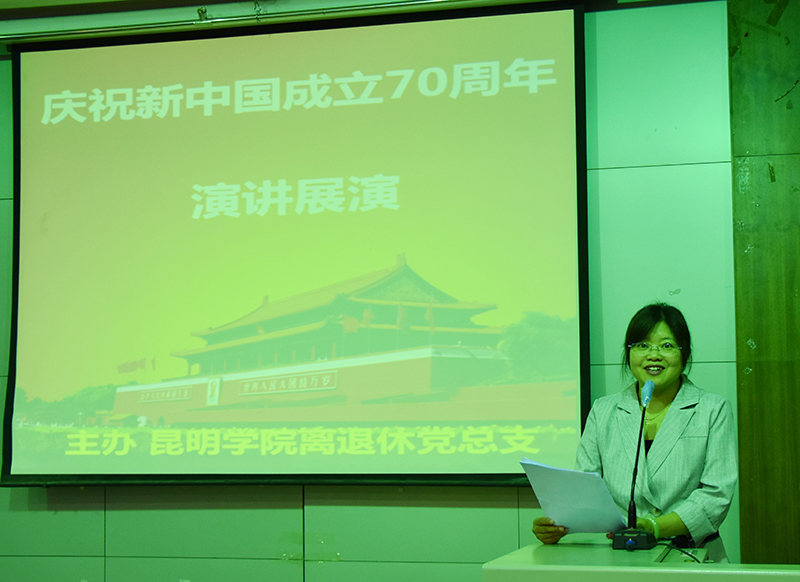 为深入学习贯彻习近平新时代中国特色社会主义思想和党的十九大精神,5月28日离退休党总支组织离退休教职工在昆师路老阶梯教室开展“庆祝中华人民共和国成立70周年”演讲活动,此次活动也是永利官网“银发聚力彩云南 助力昆明新发展”主题活动之一。