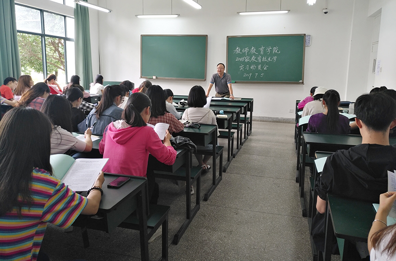 7月5日,教师教育学院在博雅楼1132教室召开2016级师范生教育实习动员大会。学院副院长常进荣,教学秘书徐学睿,2016级教育技术学班班主任、指导教师以及全班同学参加动员大会。