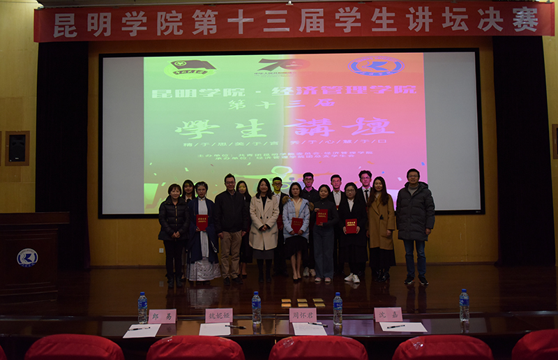12月12日晚,由共青团永利集团3044官网欢迎您委员会、经济管理学院主办,经济管理学院团总支学生会承办的永利集团3044官网欢迎您第十三届学生讲坛决赛在惟行楼1501报告厅成功举办。共青团云南省委副书记(挂职)、共青团永利集团3044官网欢迎您委员会书记魏妮娅老师,共青团云南省委副书记(挂职)、云南广播电视台著名主持人周怀君老师,共青团永利集团3044官网欢迎您委员会副书记沈嘉老师担任评委。永利集团3044官网欢迎您校团委副书记郎易老师、经济管理学院团总支书记鲍鲲老师和200余名学生观看比赛。