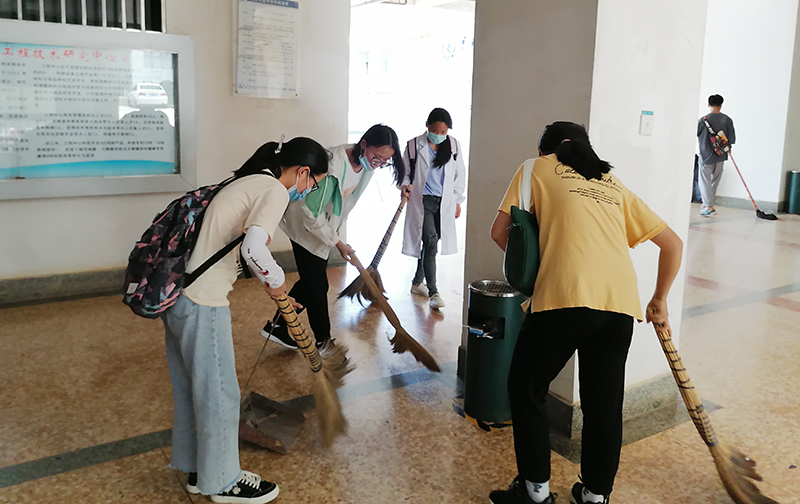 打扫的过程是辛苦的,但我院19级志愿者们积极响应学校创建文明校园号召,人人力行创建全国文明校园,进一步营造浓厚的文明校园创建氛围,做热爱劳动、崇尚文明、践行文明的先锋,做文明校园新风的倡导者、传播者、实践者。