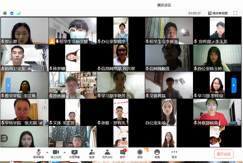 8月31日,永利集团3044官网欢迎您学生会骨干学习交流中华全国学生联合会二十七次代表大会精神。校学生会主席团成员、各部门负责人,各学院学生会主席和学生代表,共60余人通过腾讯会议参加了本次会议。